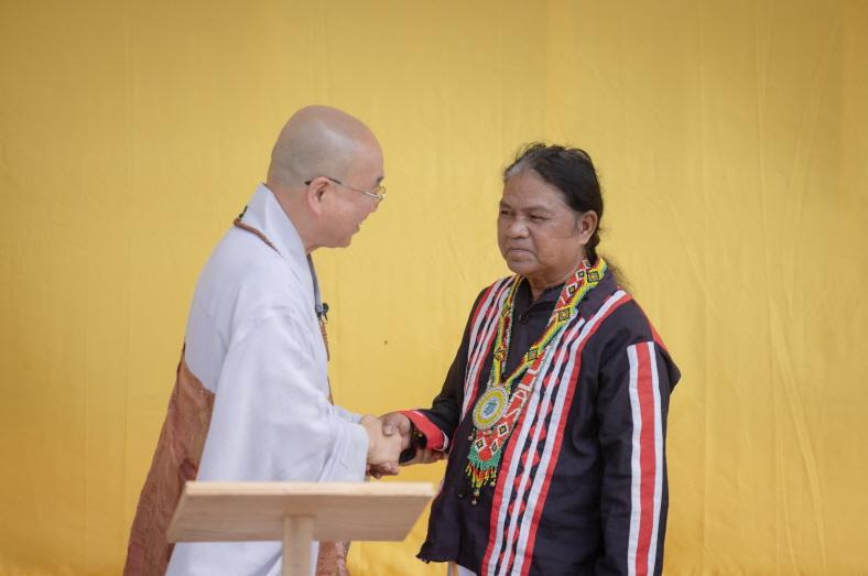 Venerable Pomnyun Sunim placed a flower garland around the Datu’s neck as a token of appreciation.