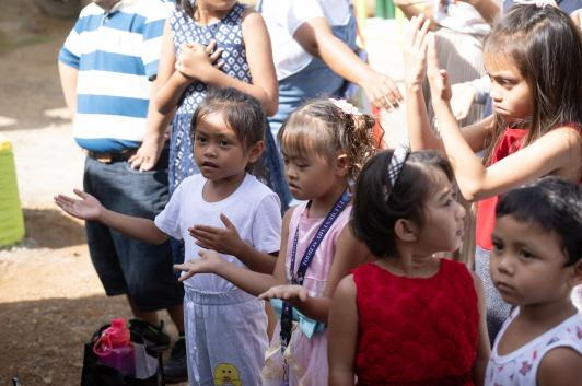 Next, the students presented a celebratory performance. Degebdeb Village is a place where the traditional culture of the Manobo people has been well preserved. Dressed in traditional attire, the students took the stage and expressed the process of farming—sowing seeds, nurturing the crops, and harvesting them—through dance.