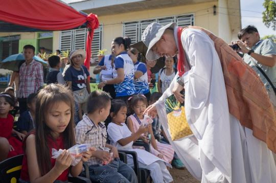 Dear children, many people are expressing their love for you in this way. I hope you will grow up well surrounded by such care and affection. Providing special education for children is a very challenging task. Please give a round of applause for the teachers as well.”