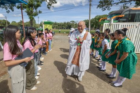 Before boarding the bus after the completion ceremony, the Venerable expressed special gratitude to the Bukidnon Provincial Education Superintendent for participating in all the completion ceremonies over the past four days.