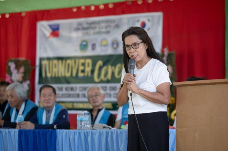 Next, the vice governor of Bukidnon Province delivered a welcome address. Then JTS Philippines Director Noh Jae-guk presented a progress report, stating, “Beginning with the groundbreaking ceremony in February 2025, the school was successfully completed on schedule through cooperation between JTS, the municipal government, and the Department of Education. JTS provided the construction materials, while the local government (LGU) took charge of providing labor and managing the construction site.”